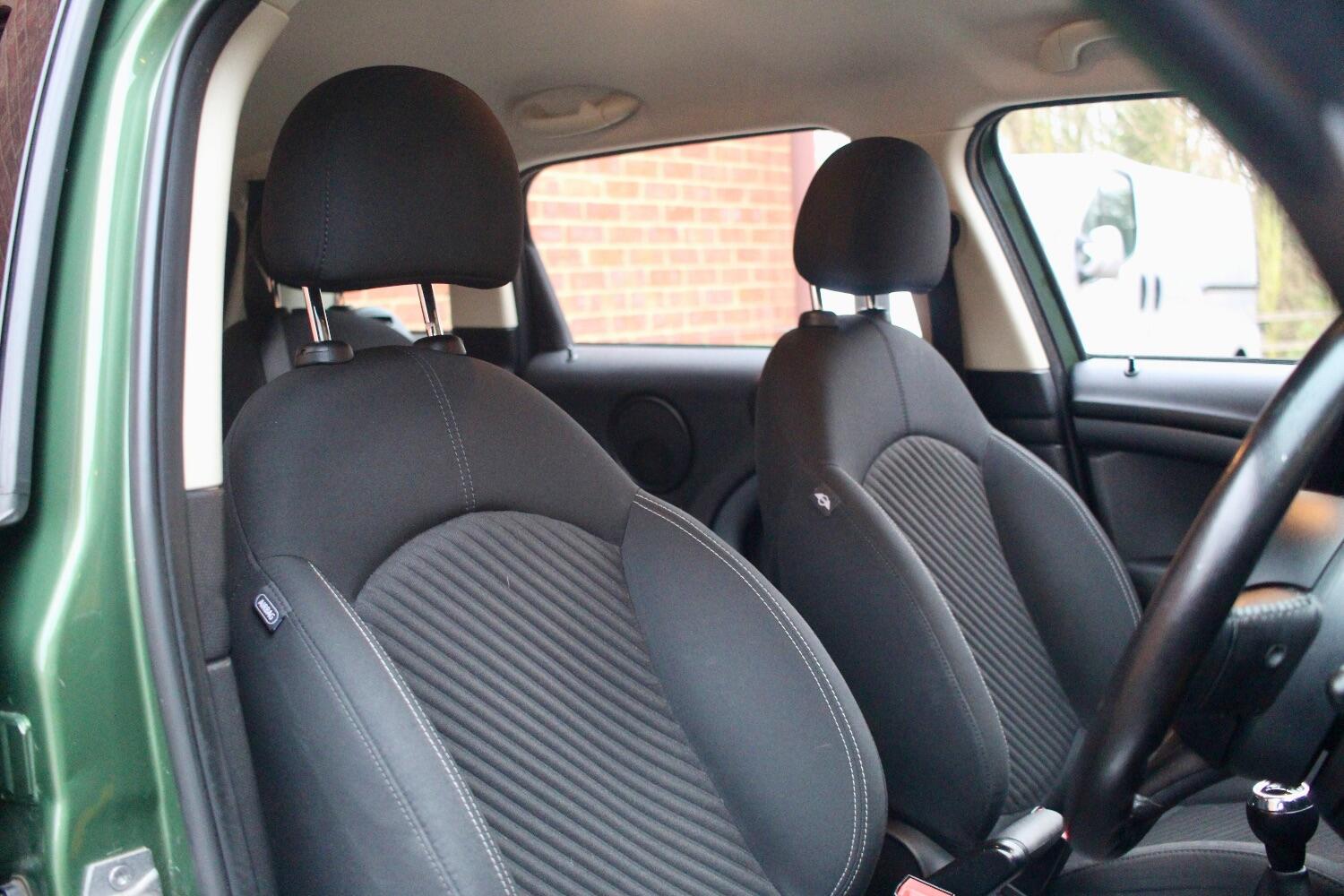 There is a great specification on this Countryman which includes - Bluetooth telephone, DAB radio, Jungle green metallic paint, Front fog lights, Black exterior trim, Front, 1" 5 double spoke alloy wheels, Rear parking sensors, Gloss black interior, Air conditioning.
