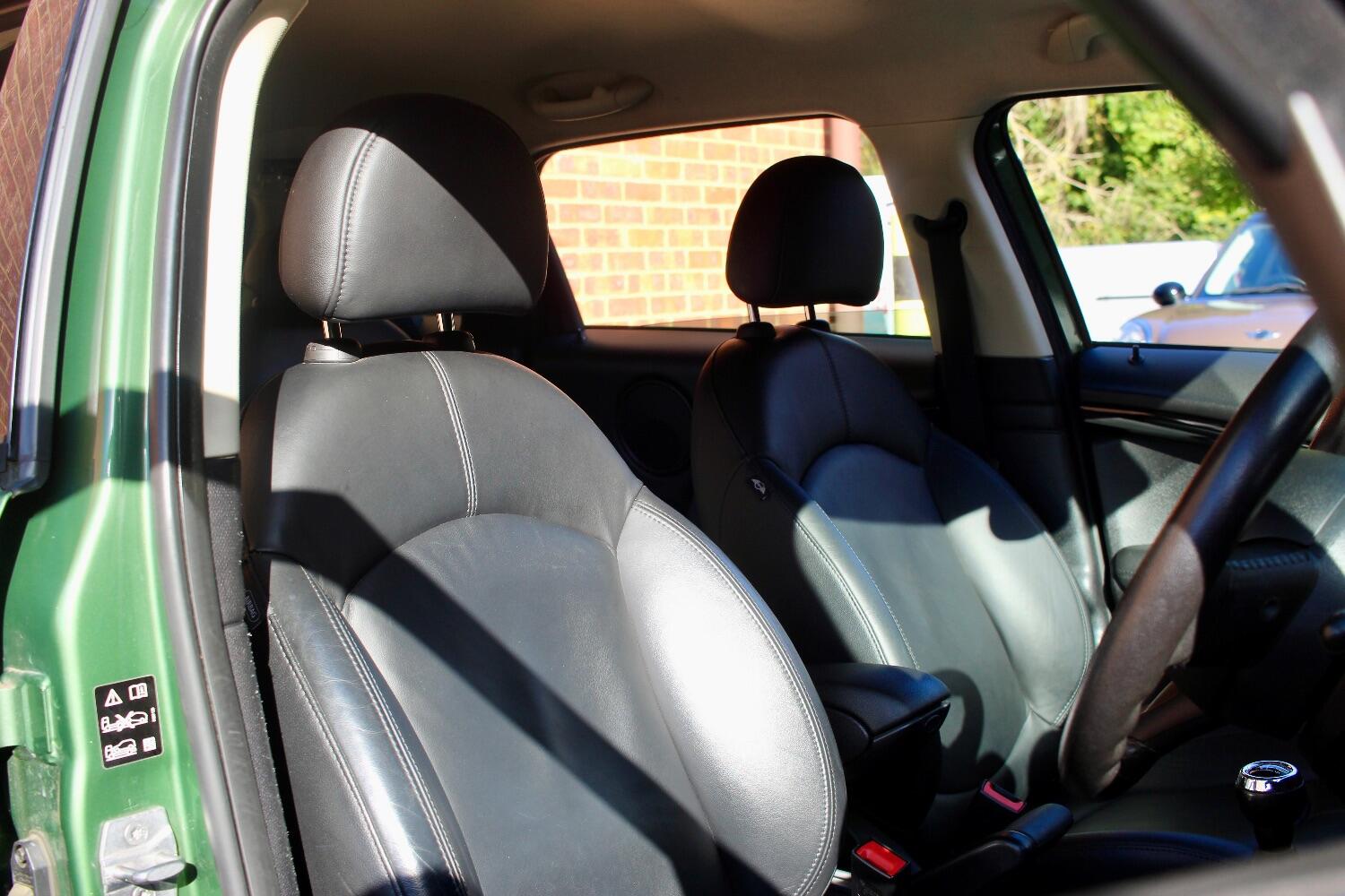 There is a great specification on this Countryman which includes - Chili pack, Media pack, Satellite navigation, Bluetooth telephone and media, DAB radio, Jungle green metallic paint, Bi-Xenon headlights, Black headlight reflectors, Front fog lights, Black bonnet stripes, Black exterior trim, ALL4 exterior optics pack, Full black leather sports seats, Heated front seats, Front centre armrest, 18" Split rim alloy wheels, Rear parking sensors, Chrome line interior, Ambient lighting, Cruise control, Automatic lights and wipers, Automatic air conditioning, Flat load floor.