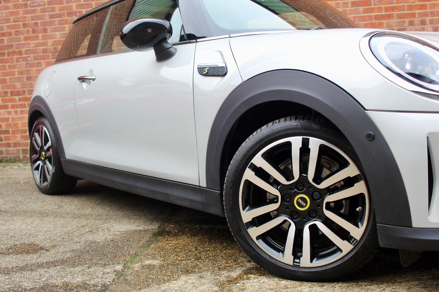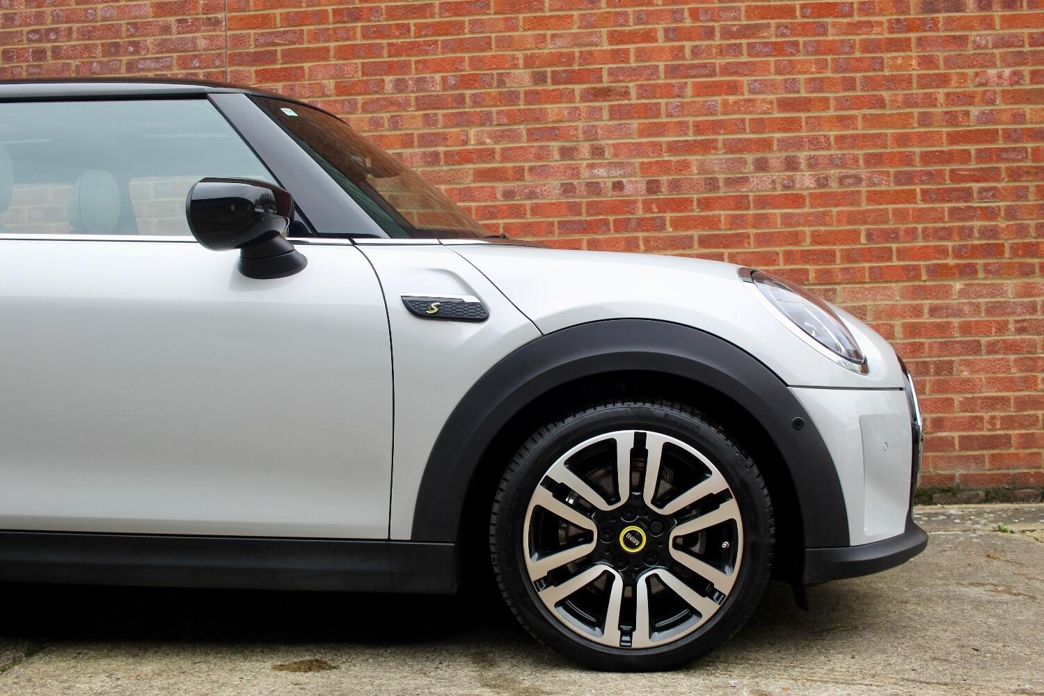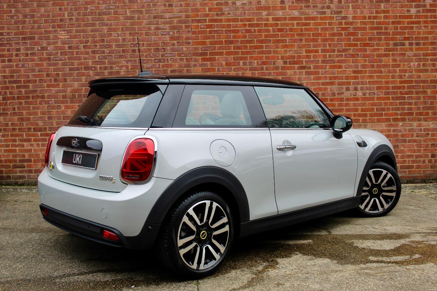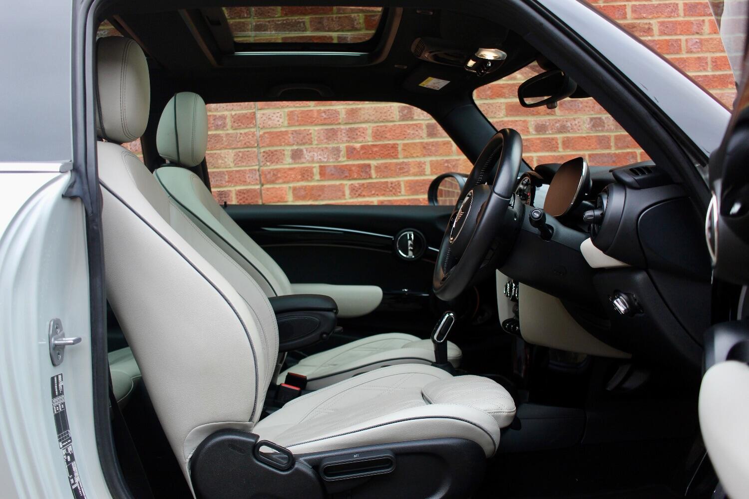 There is a huge specification on this Mini electric level 3 which includes - Electric slide/tilt panoramic sunroof, Lane keeping assist, Full beige lounge leather seats, Heated front seats, Electric folding door mirrors, Comfort access, Reverse camera, Auto dimming interior mirror, Front centre armrest, Anthracite headlining, Piano black interior trim, Ambient lighting, Quick charge cable, MINI driving modes, White silver metallic, Automatic lights and wipers, Automatic air conditioning, Cruise control, Adaptive LED headlights, Automatic high beam assist, Park assist, Front and rear sensors, Harman Kardon audio, Head up display, Apple CarPlay, Connected navigation plus, Bluetooth telephone and media, DAB radio, Wireless charging, Gloss black exterior pack.