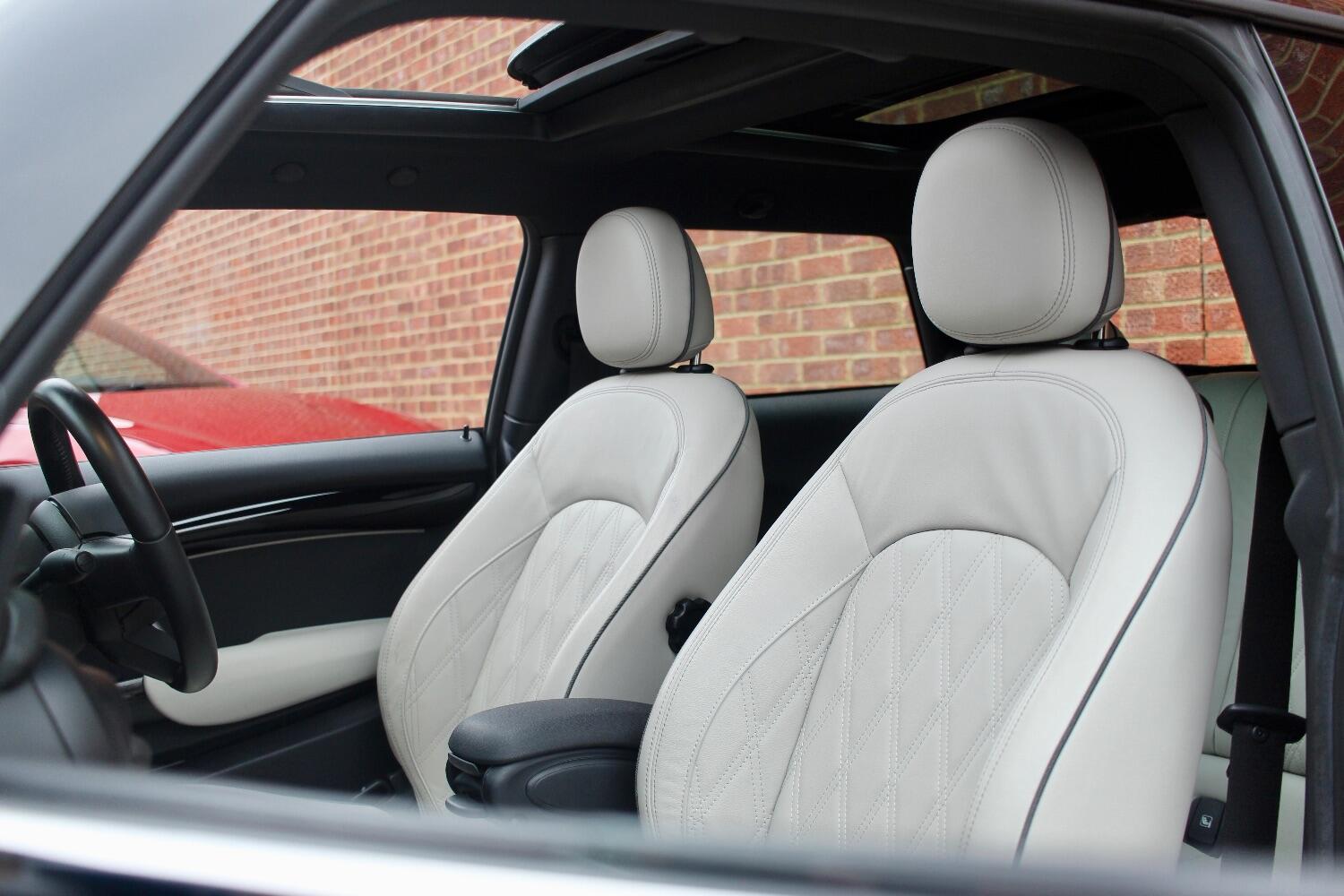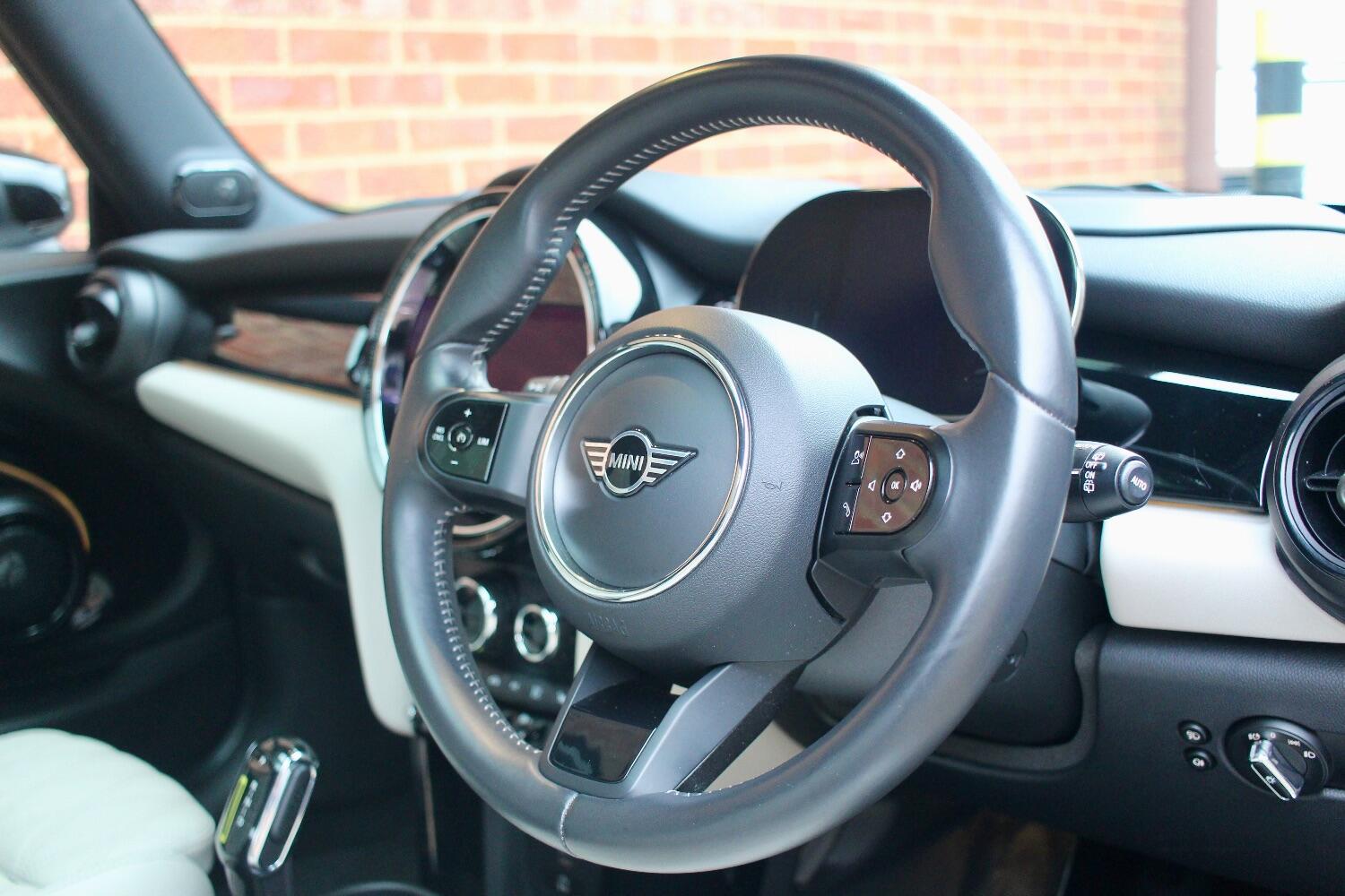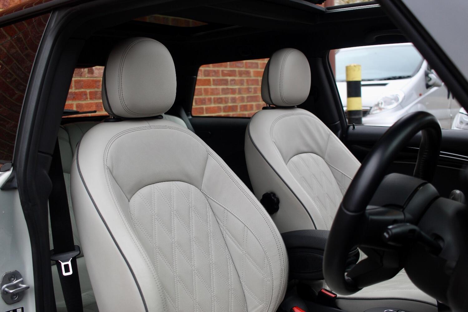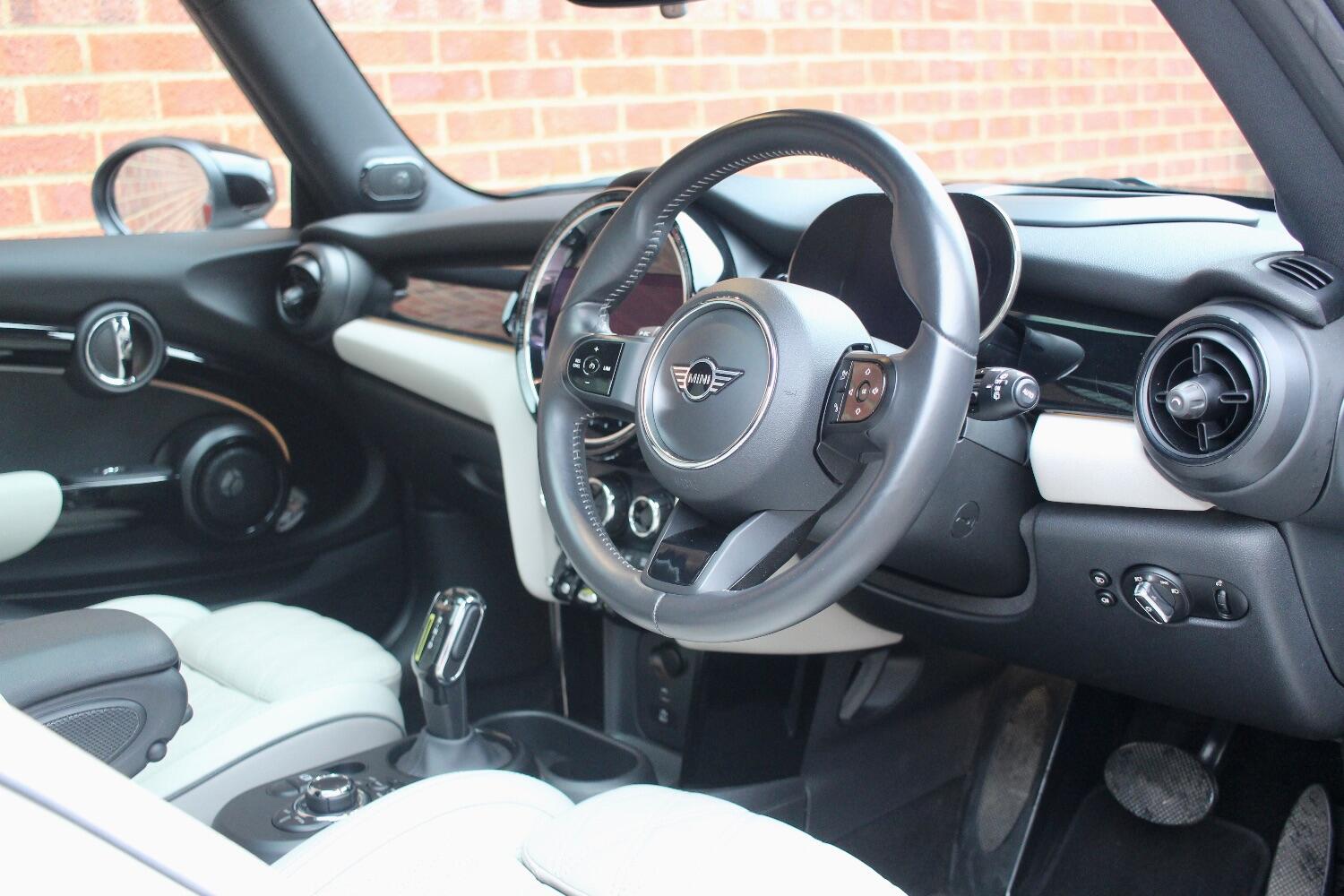 There is a huge specification on this Mini electric level 3 which includes - Electric slide/tilt panoramic sunroof, Lane keeping assist, Full beige lounge leather seats, Heated front seats, Electric folding door mirrors, Comfort access, Reverse camera, Auto dimming interior mirror, Front centre armrest, Anthracite headlining, Piano black interior trim, Ambient lighting, Quick charge cable, MINI driving modes, White silver metallic, Automatic lights and wipers, Automatic air conditioning, Cruise control, Adaptive LED headlights, Automatic high beam assist, Park assist, Front and rear sensors, Harman Kardon audio, Head up display, Apple CarPlay, Connected navigation plus, Bluetooth telephone and media, DAB radio, Wireless charging, Gloss black exterior pack.