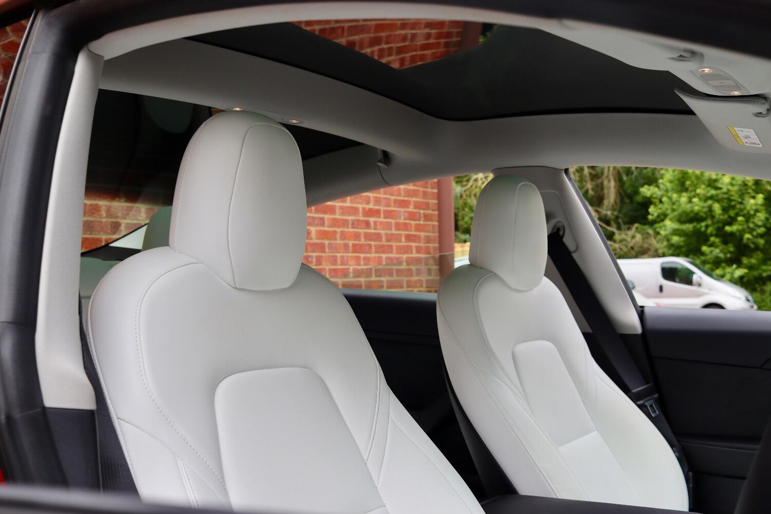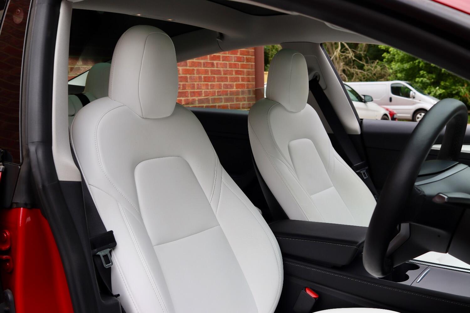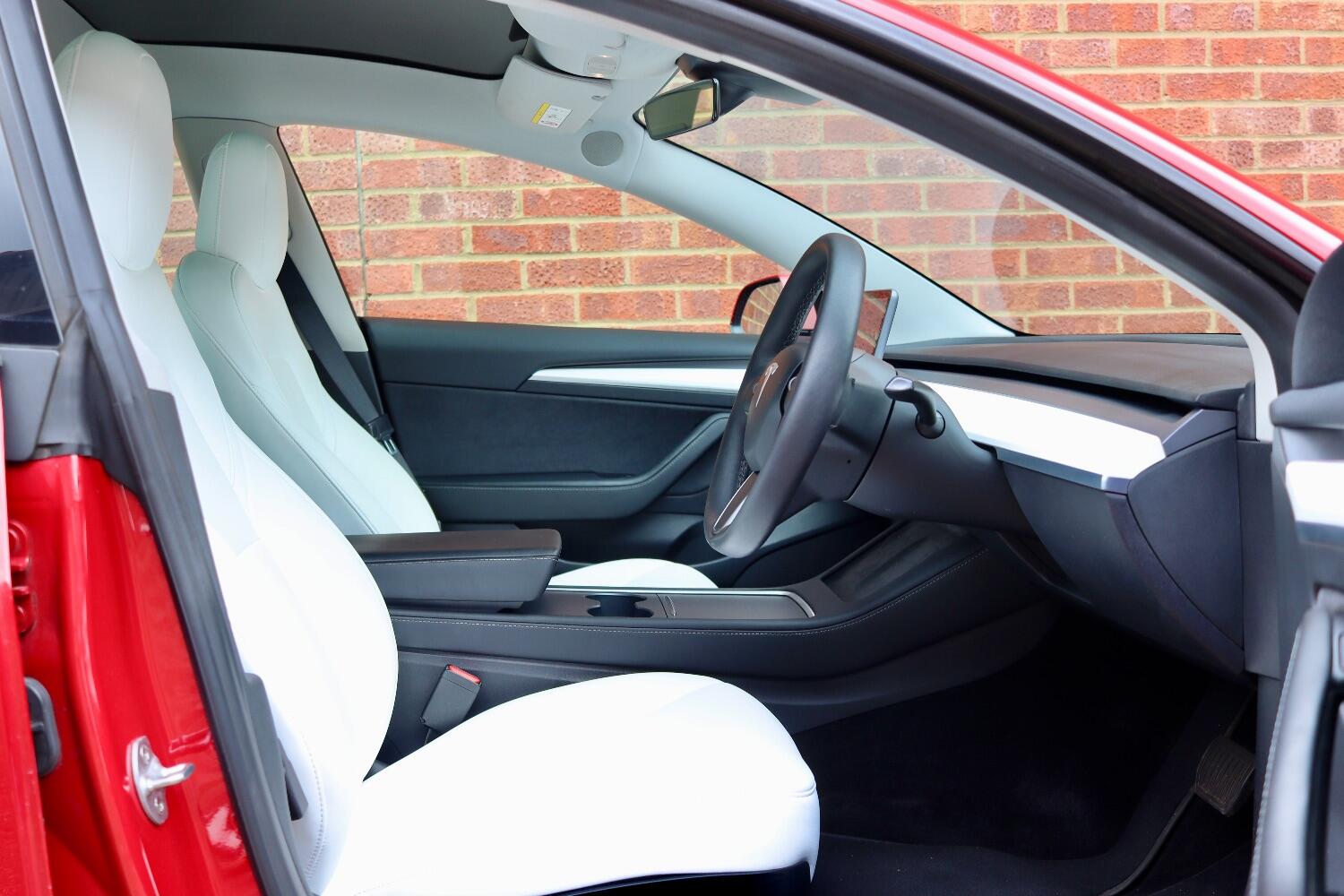 There are some fantastic features to this Model 3 which include - Red multi coat metallic paint, Full white premium leather interior, Panoramic roof, Electric seats, Satellite navigation, Bluetooth telephone and media, DAB radio, Heated front seats, Heated rear seats, Heated steering wheel, Electric tailgate, USB, Wireless charging, Automatic adaptive headlights, Automatic wipers, Automatic high beam assist, Autopilot, Reverse camera, 19" Sport wheels, Keyless entry, Sentry mode.