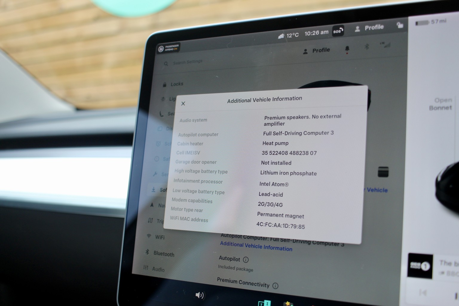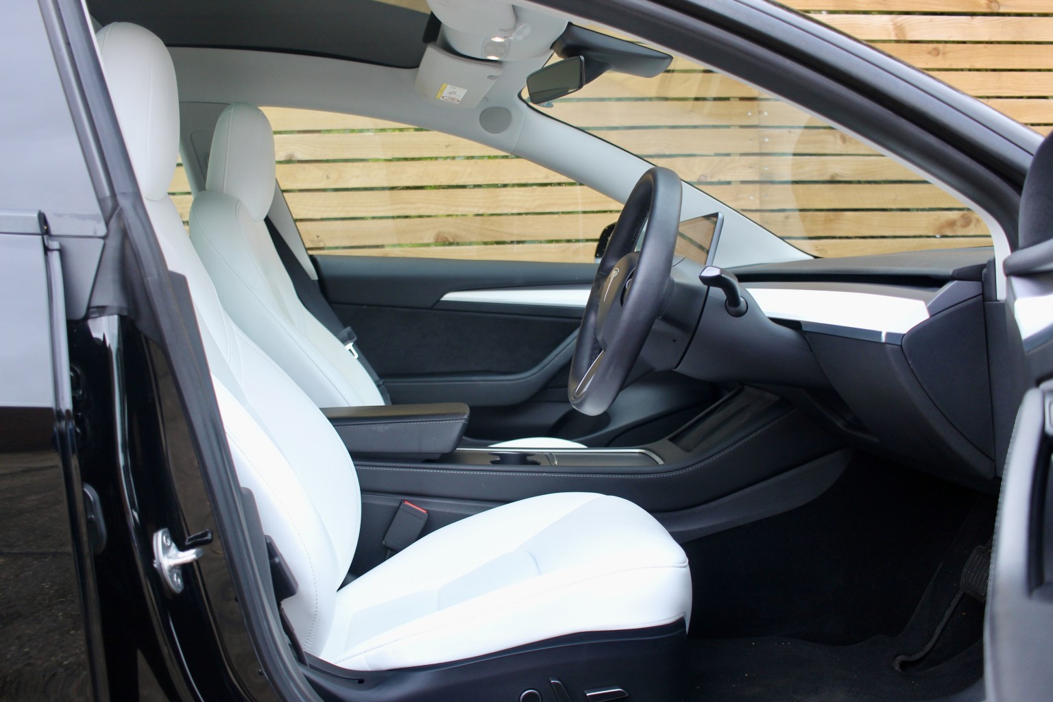 There is a great specification on this Model 3 which includes - Premium engineered White upholstery, Heated front seats, Heated windscreen, Solid black paint, 18" aero alloy wheels, Autopilot, Adaptive headlights, Automatic high beam assist, Front and rear parking sensors, Cameras, Panoramic roof, Electric folding door mirrors, Electric tailgate, Electric front seats with memory, Automatic lights and wipers, Automatic air conditioning, Wireless phone charging, Video streaming, Arcade, Toybox, Satellite navigation, Bluetooth telephone and media, Premium speakers, Heat pump.