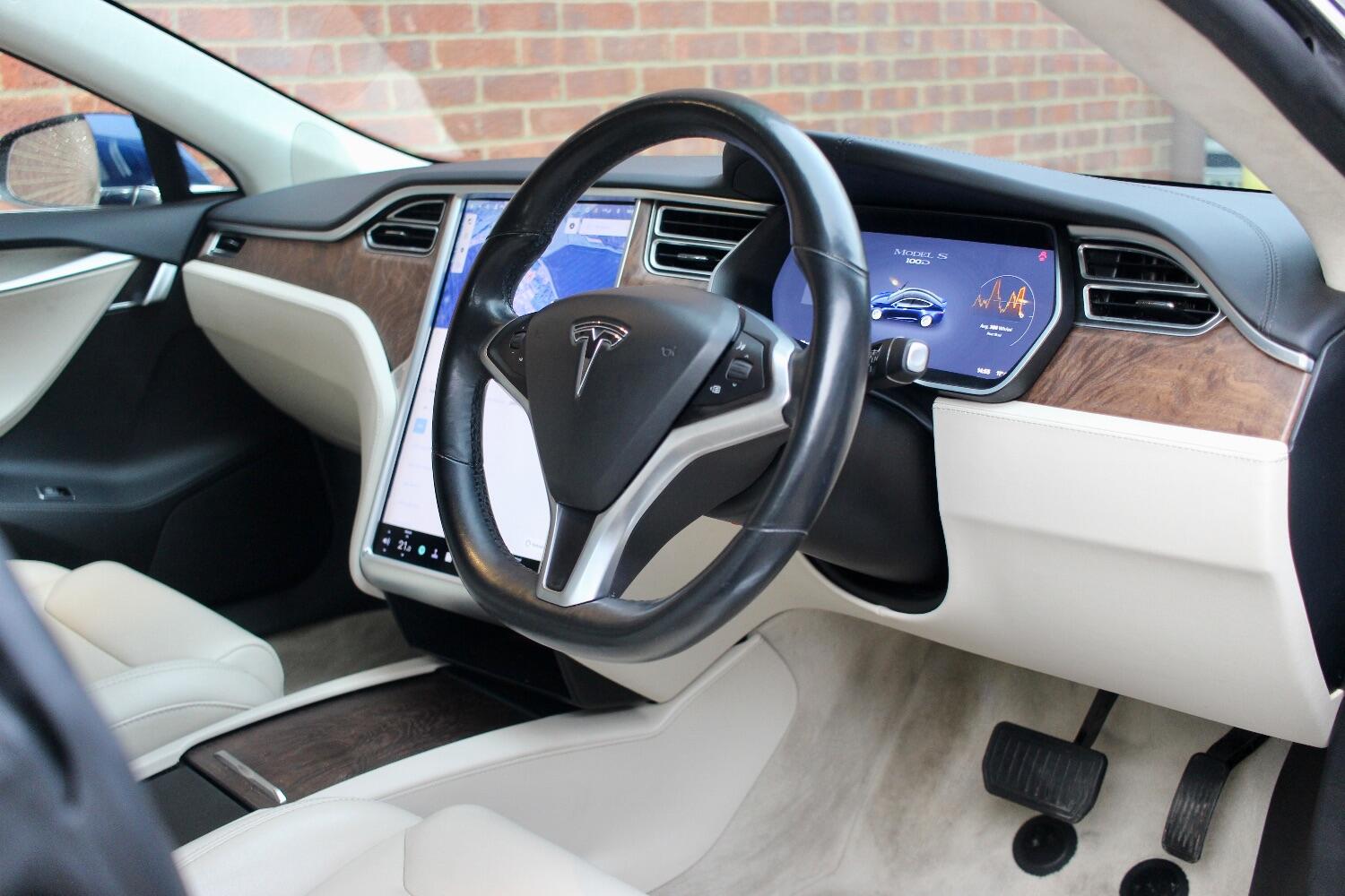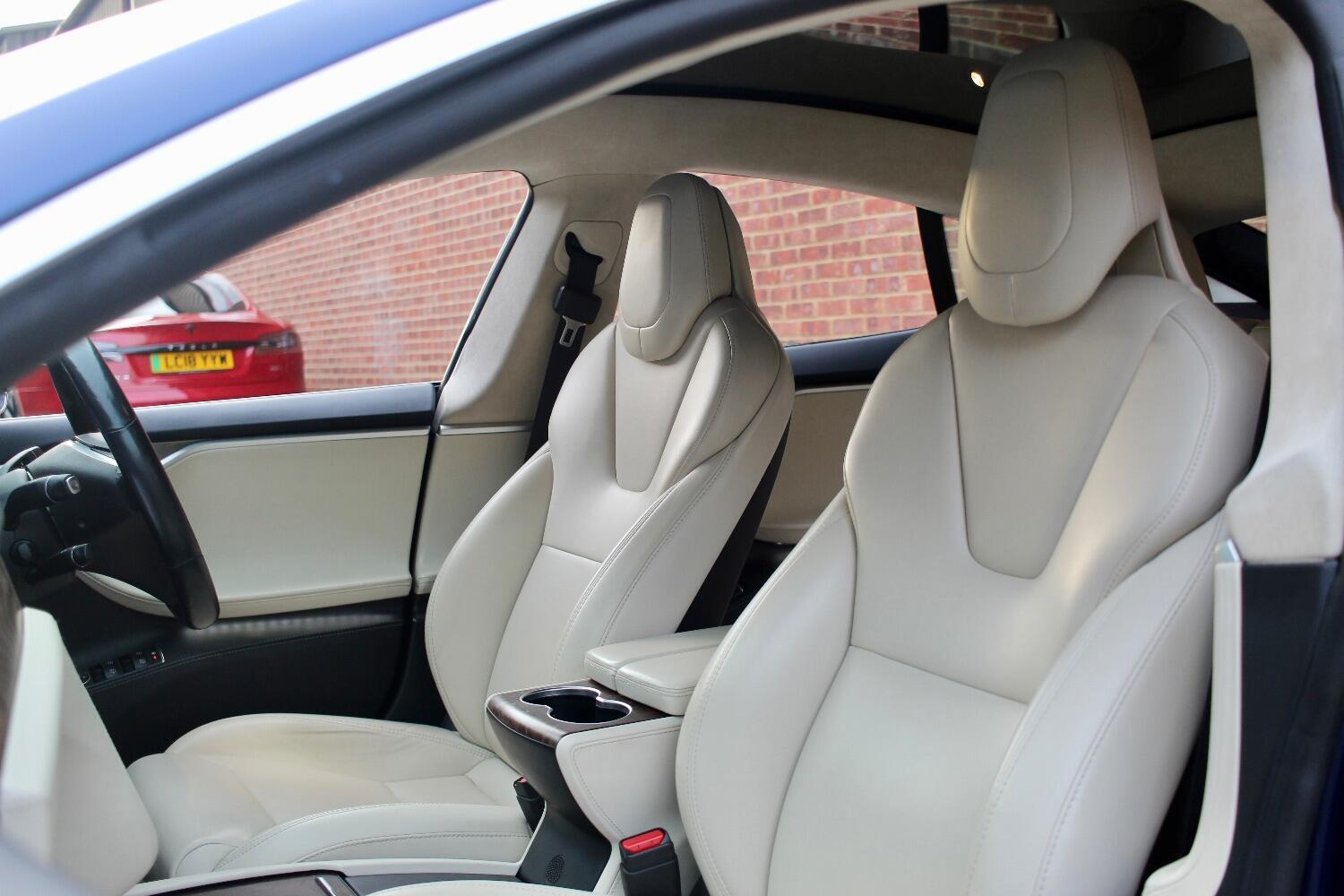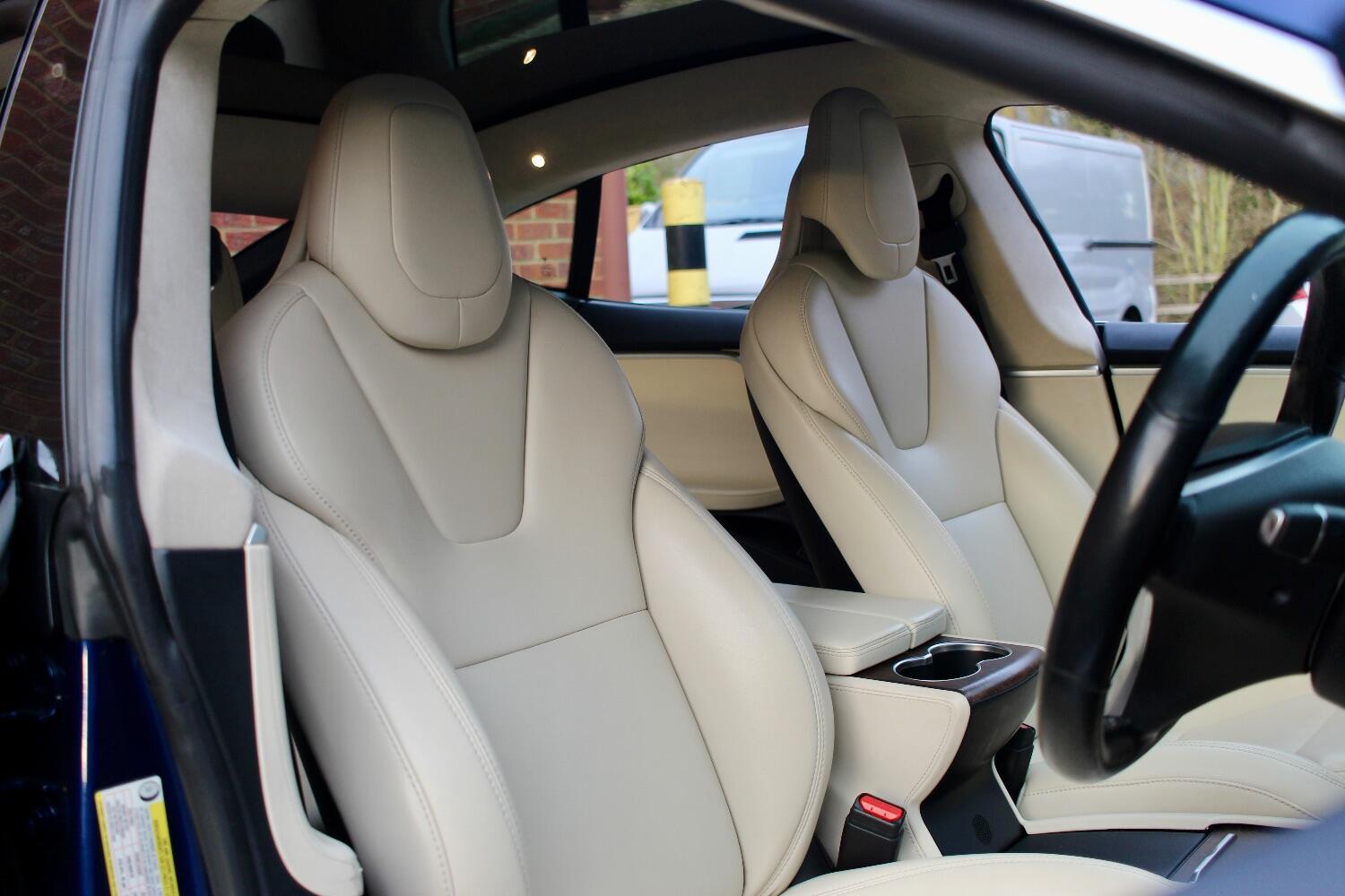 There is an excellent specification on this Model S 100D which includes - Premium connectivity, Deep blue metallic, All seats heated, Heated steering wheel, Autopilot, Panoramic roof, Front and rear parking sensors, Reverse assist camera, 19" silver slip stream alloy wheels, Full beige leather upholstery, Electric folding door mirrors, Burr walnut interior trim, Satellite navigation, Bluetooth telephone and media, DAB radio, Air suspension, Ultra high fidelity sound, CCS adapter, Homelink, Electric tailgate.