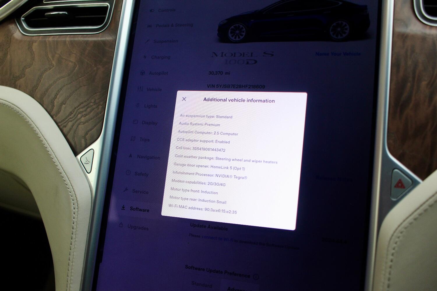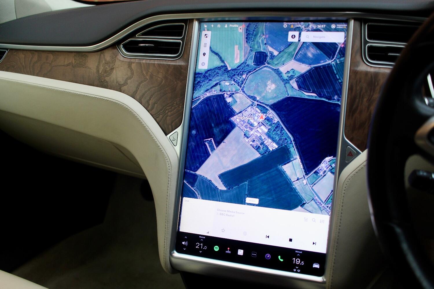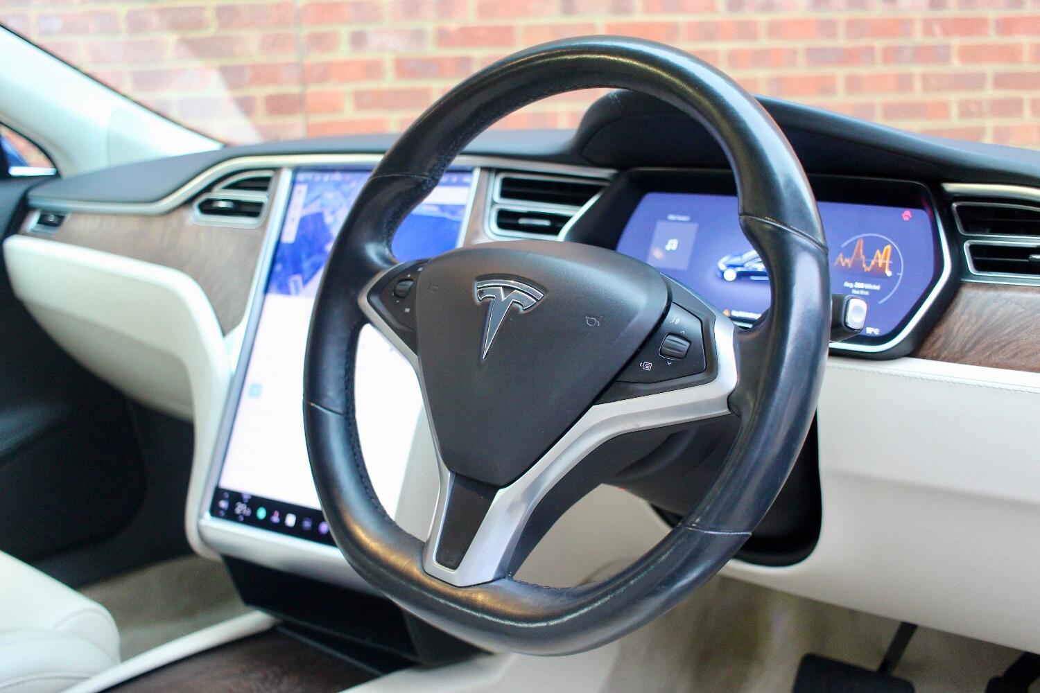 There is an excellent specification on this Model S 100D which includes - Premium connectivity, Deep blue metallic, All seats heated, Heated steering wheel, Autopilot, Panoramic roof, Front and rear parking sensors, Reverse assist camera, 19" silver slip stream alloy wheels, Full beige leather upholstery, Electric folding door mirrors, Burr walnut interior trim, Satellite navigation, Bluetooth telephone and media, DAB radio, Air suspension, Ultra high fidelity sound, CCS adapter, Homelink, Electric tailgate.