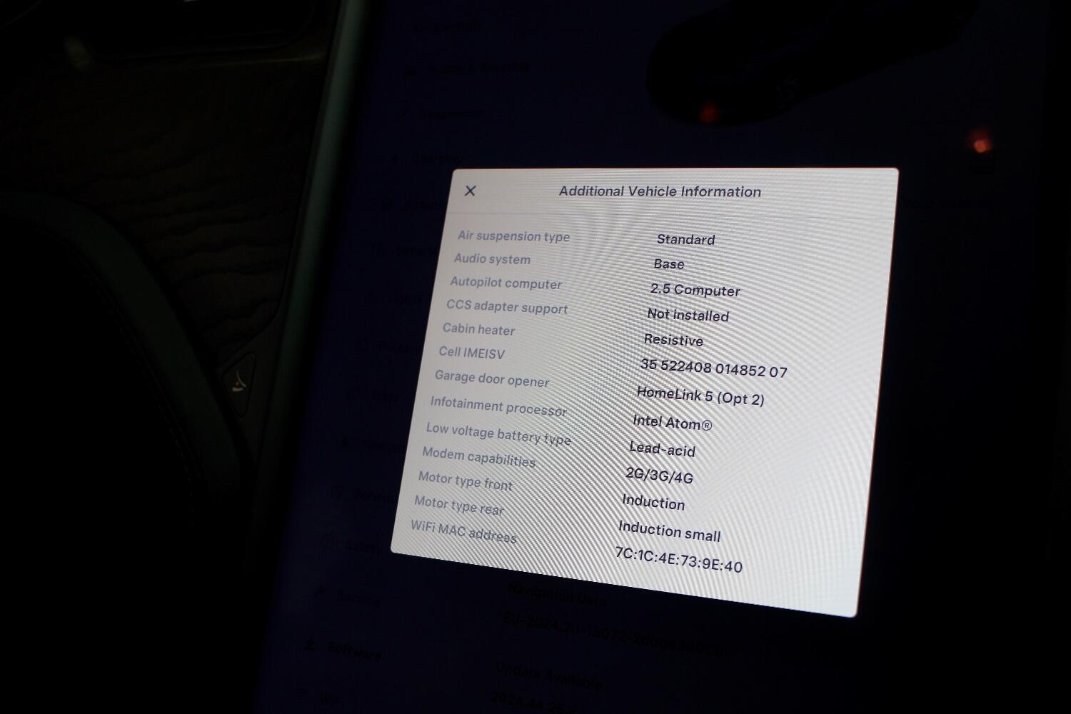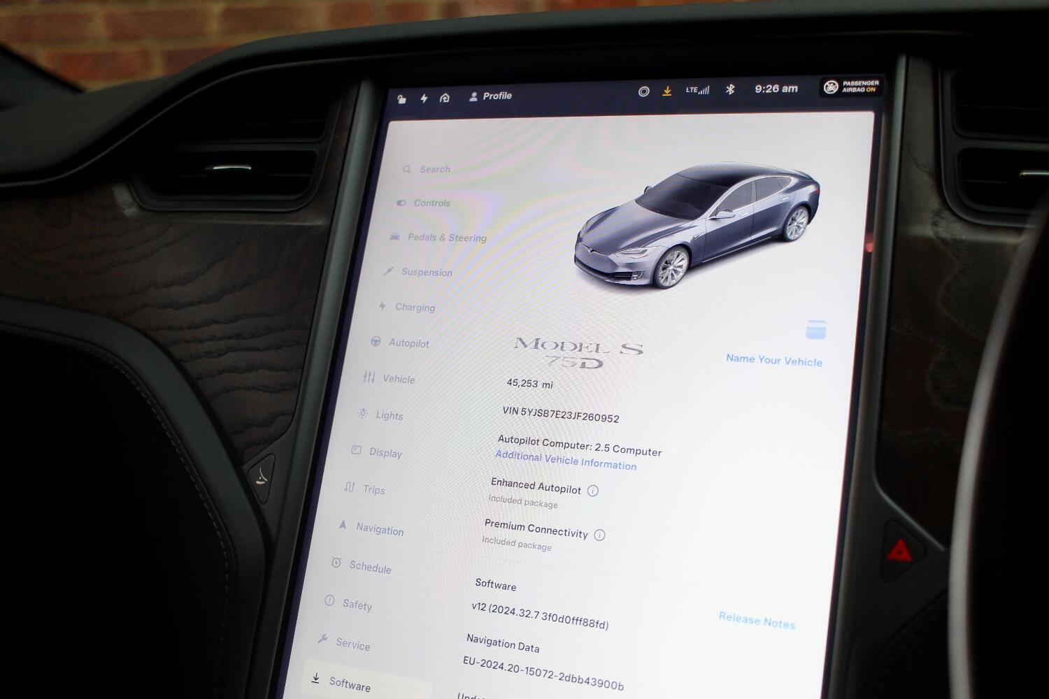 There is an excellent specification on this 75D which includes - MCU2, Enhanced autopilot, Black brake calipers, Heated front seats, Full black premium leather seats, Figured ash wood interior trim, GPS enabled homelink, Midnight silver metallic paint, Panoramic roof, Smart air suspension, Black headlining, 19" silver slipstream alloy wheels, Front and rear parking sensors, Reverse assist camera, Automatic lights and wipers, Automatic high beam assist, Electric folding door mirrors, Satellite navigation, Bluetooth telephone and media, DAB radio, Premium connectivity included, Electric tailgate.