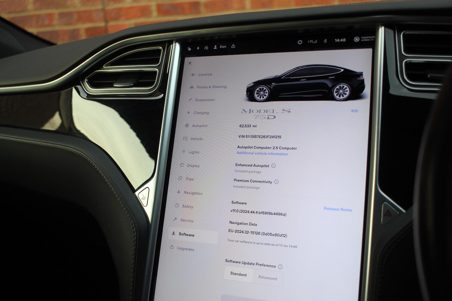 There is an excellent specification on this 75D which includes - Enhanced autopilot, Summon, Smart air suspension, Black brake calipers, Heated front seats, Black textile interior, Dark ash wood interior trim, GPS enabled homelink, Obsidian black metallic paint, Panoramic roof, Black headlining, 19" Slipstream alloy wheels, Front and rear parking sensors, Reverse assist camera, Automatic lights and wipers, Automatic high beam assist, Electric folding door mirrors, Satellite navigation, Bluetooth telephone and media, DAB radio, Premium connectivity included, Electric tailgate.