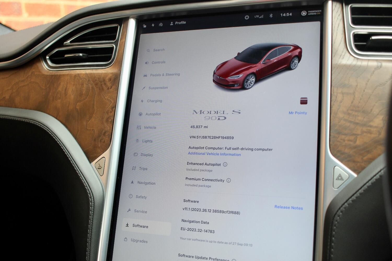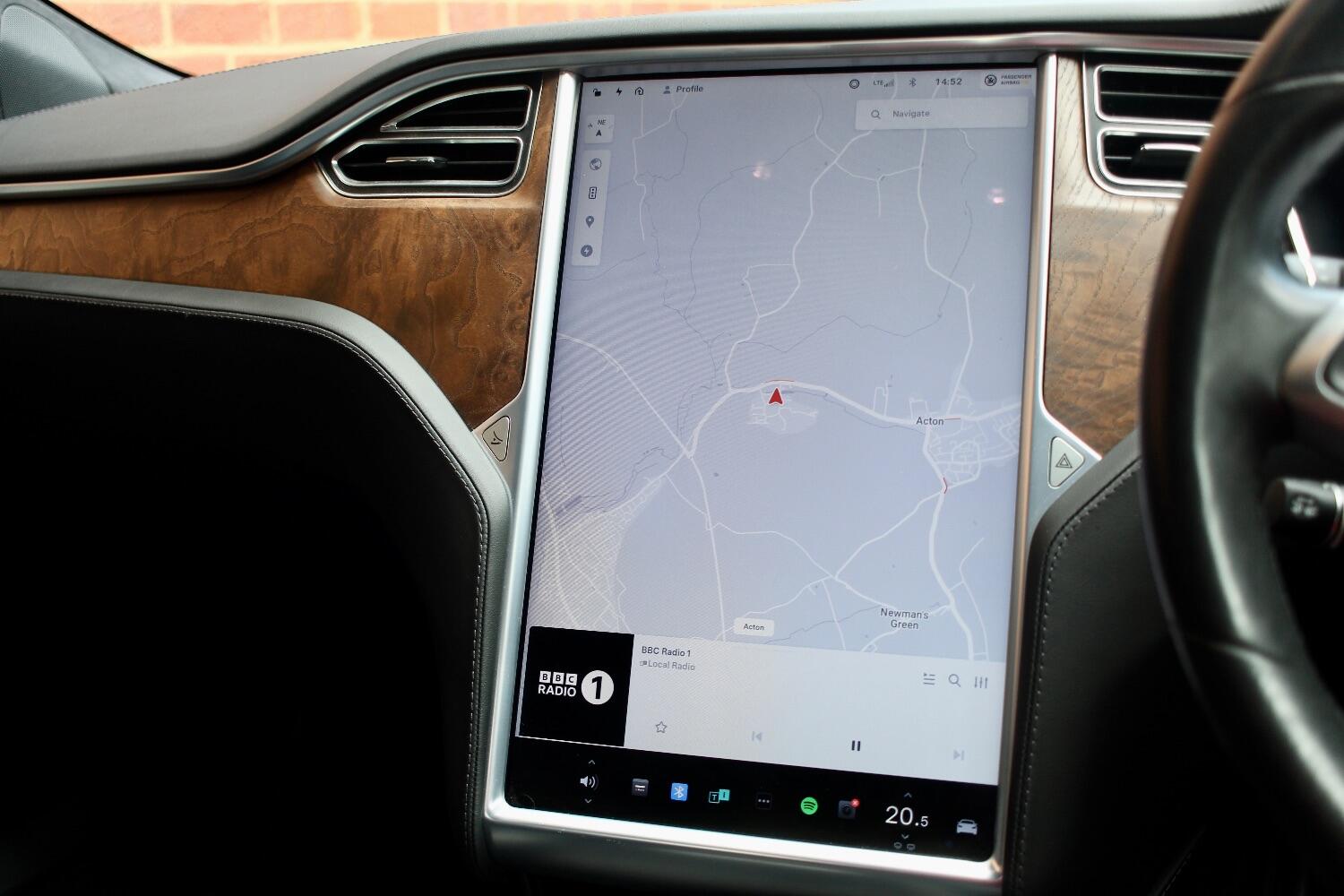 There is a great specification on this Model S which includes - Panoramic roof, MCU2, CCS adapter, Subzero weather package, Enhanced autopilot, Black brake calipers, Figured ash wood decor, GPS enabled homelink, Full black leather premium upholstery, All seats heated, Heated steering wheel, Red multi coat paintwork, Smart air suspension, Alcantara headlining, 19" silver slipstream alloy wheels, LED headlights, Automatic light, Automatic high beam assist, Front and rear parking sensors, Reverse assist camera, Satellite navigation, Bluetooth telephone and media, DAB radio, Electric front seats with memory, Electric adjustable steering column, Video streaming, Premium connectivity included, Electric folding door mirrors.
