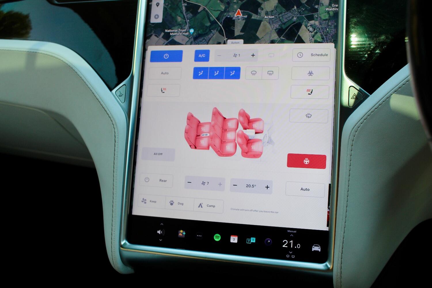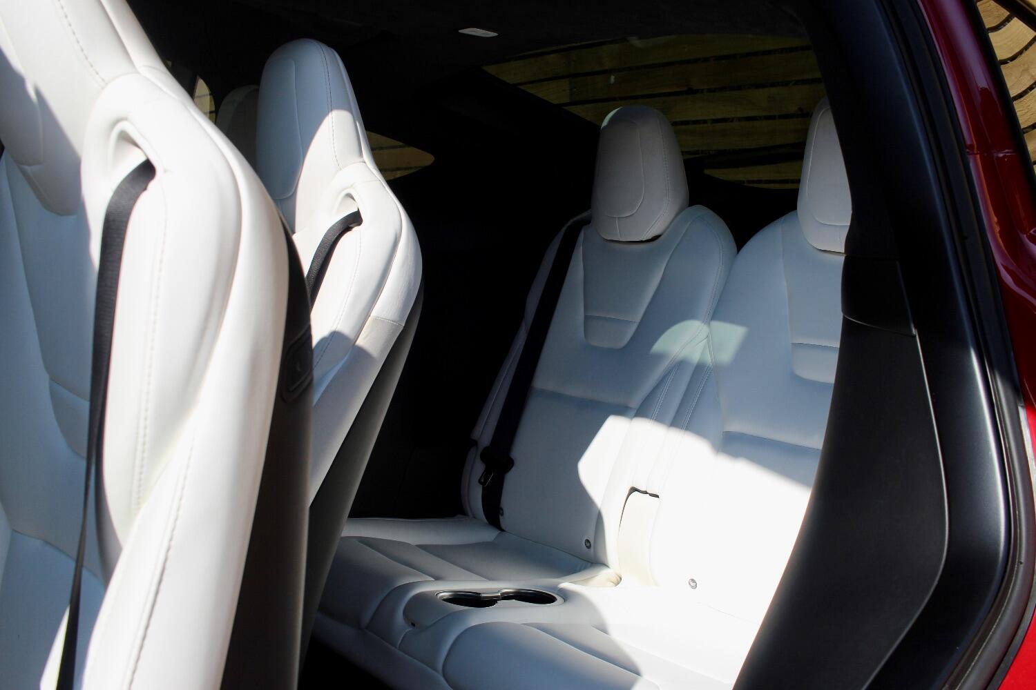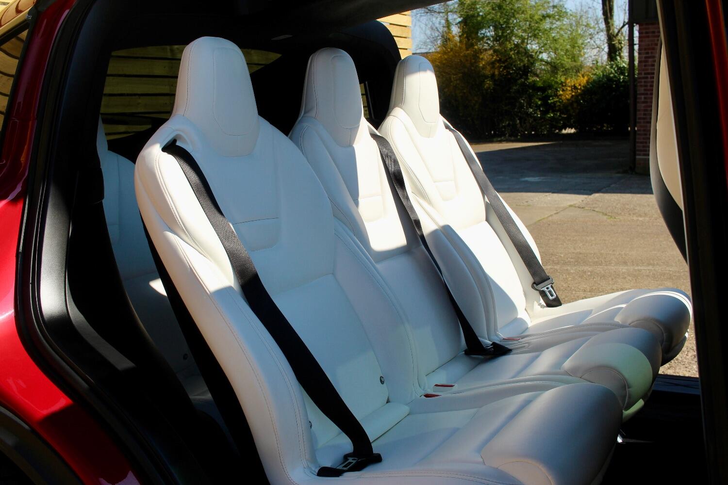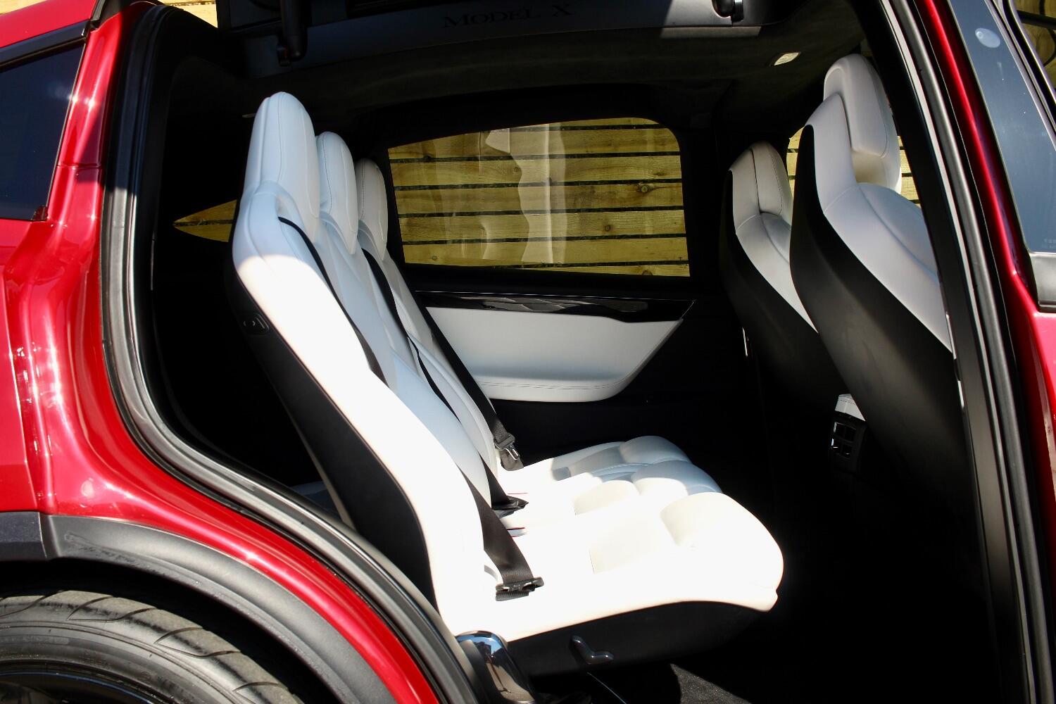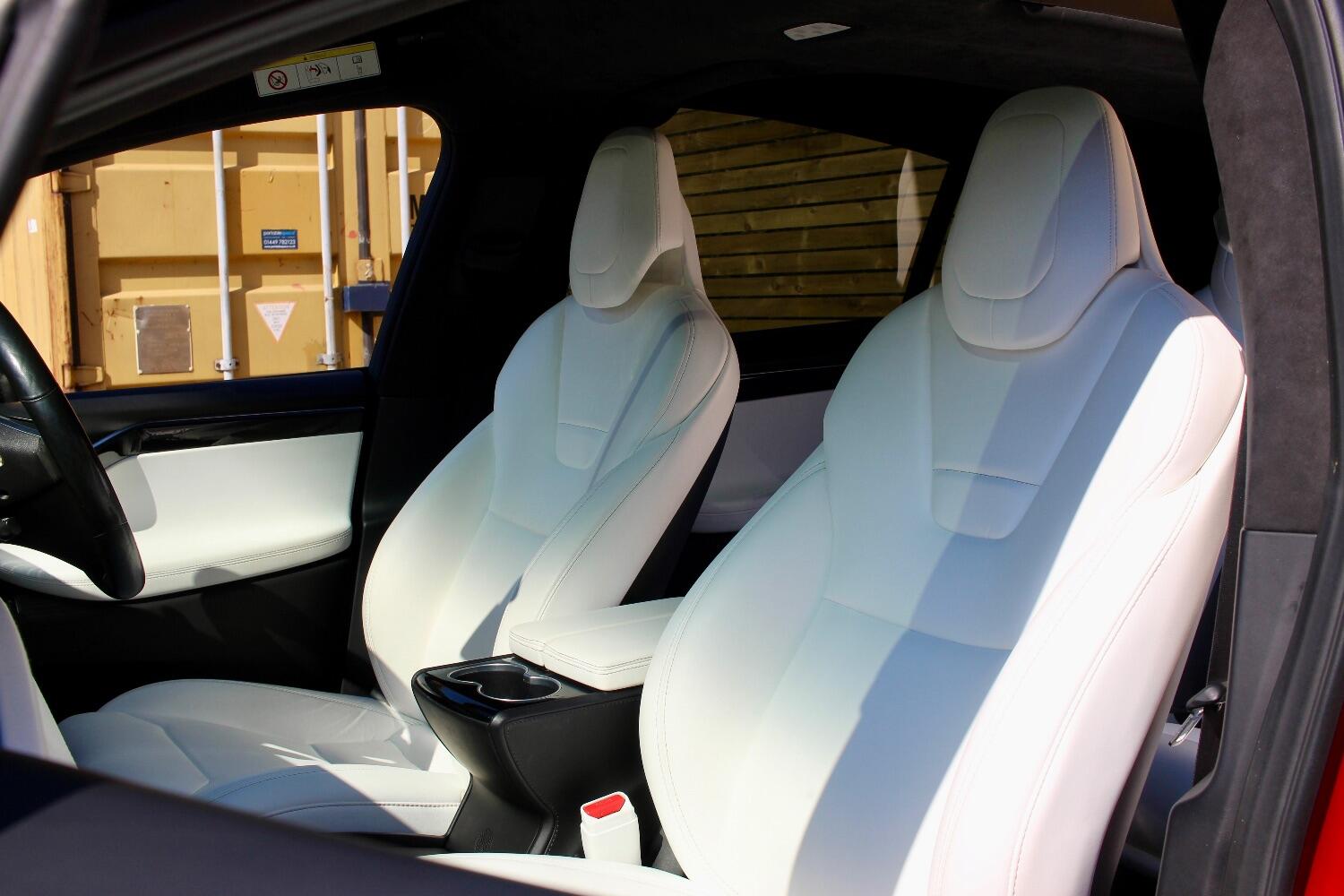 There is an excellent specification on this Model X which includes - MCU 2, 7 Seats, Full self drive capability, White premium leather interior, Electric adjustable front and middle row seats, Sub zero weather pack, All seats heated, Heated steering wheel, Smart air suspension, Summon, Dark ash interior trim, GPS enabled homelink, Automatic lights and wipers, Automatic high beam assist, Electric folding door mirrors, Electric tailgate, Parking sensors, Cameras, Adaptive cruise control, Darkened rear glass, Satellite navigation, Bluetooth telephone and media, DAB radio, 22" Onyx alloy wheels in gloss black, Dark Alcantara headlining, Premium upgrades package