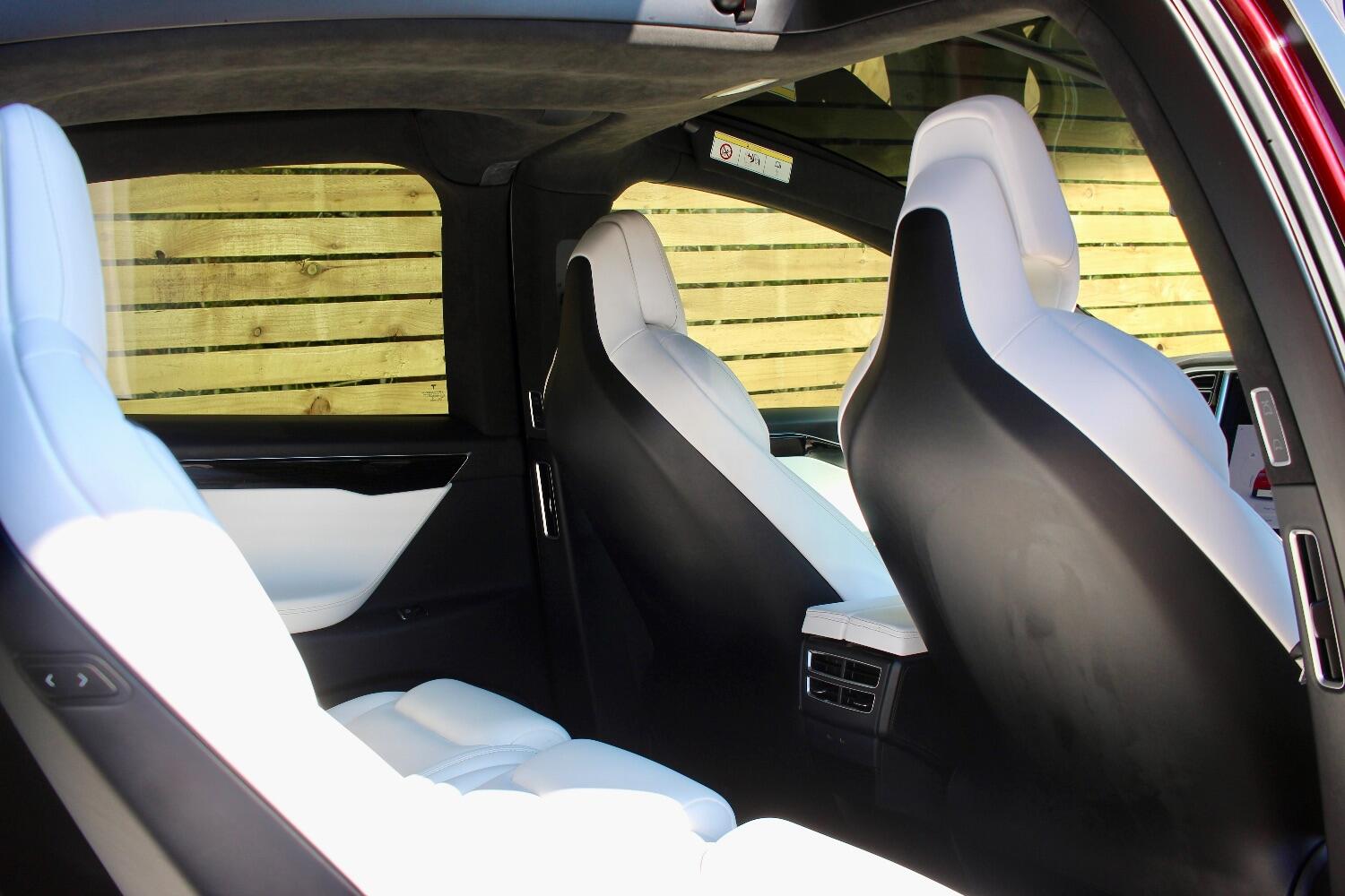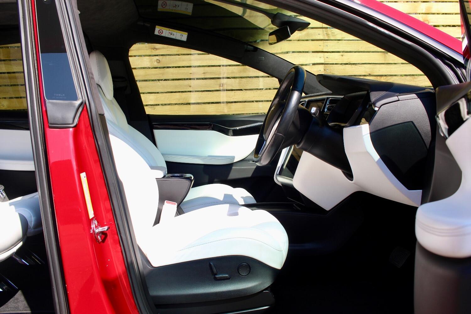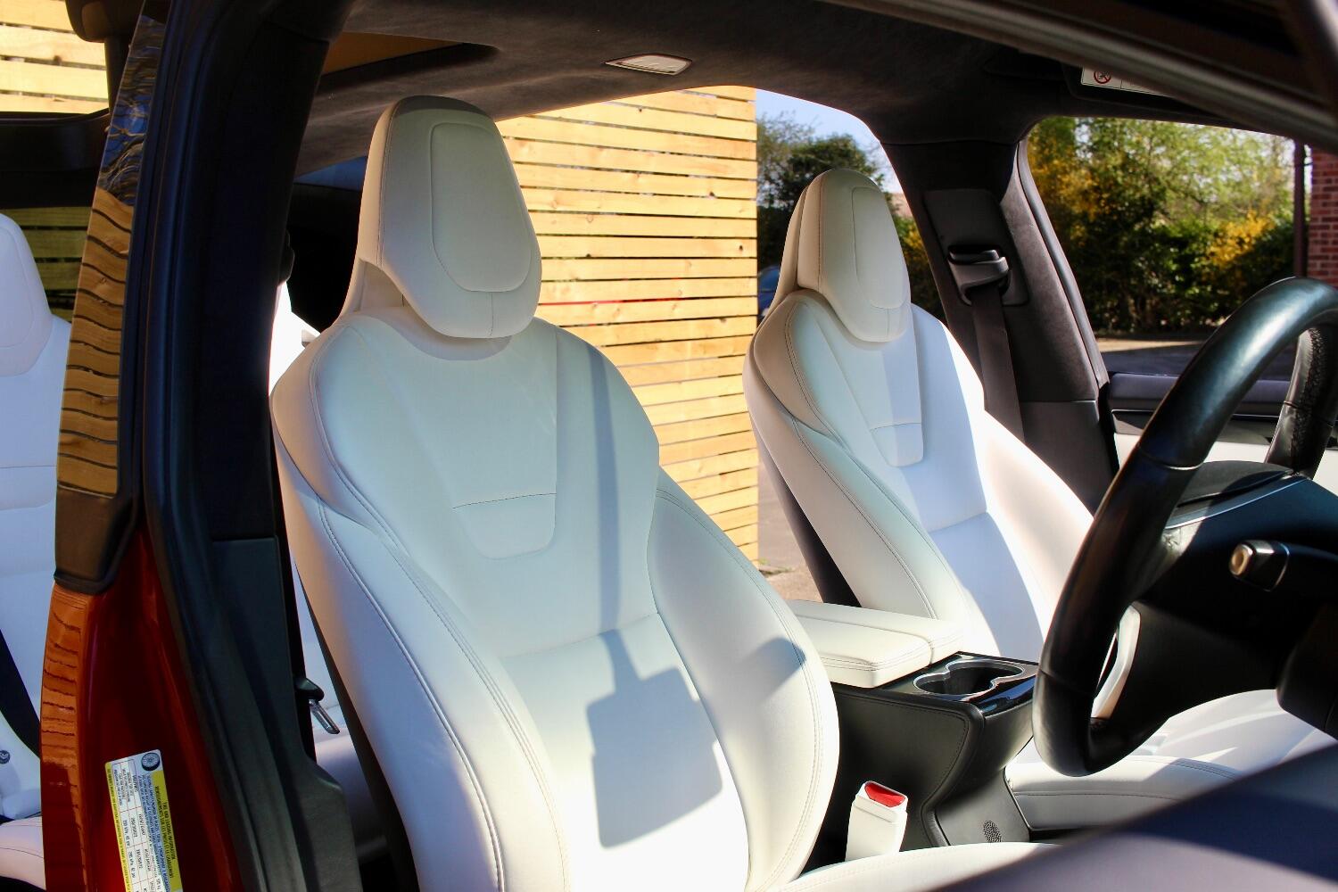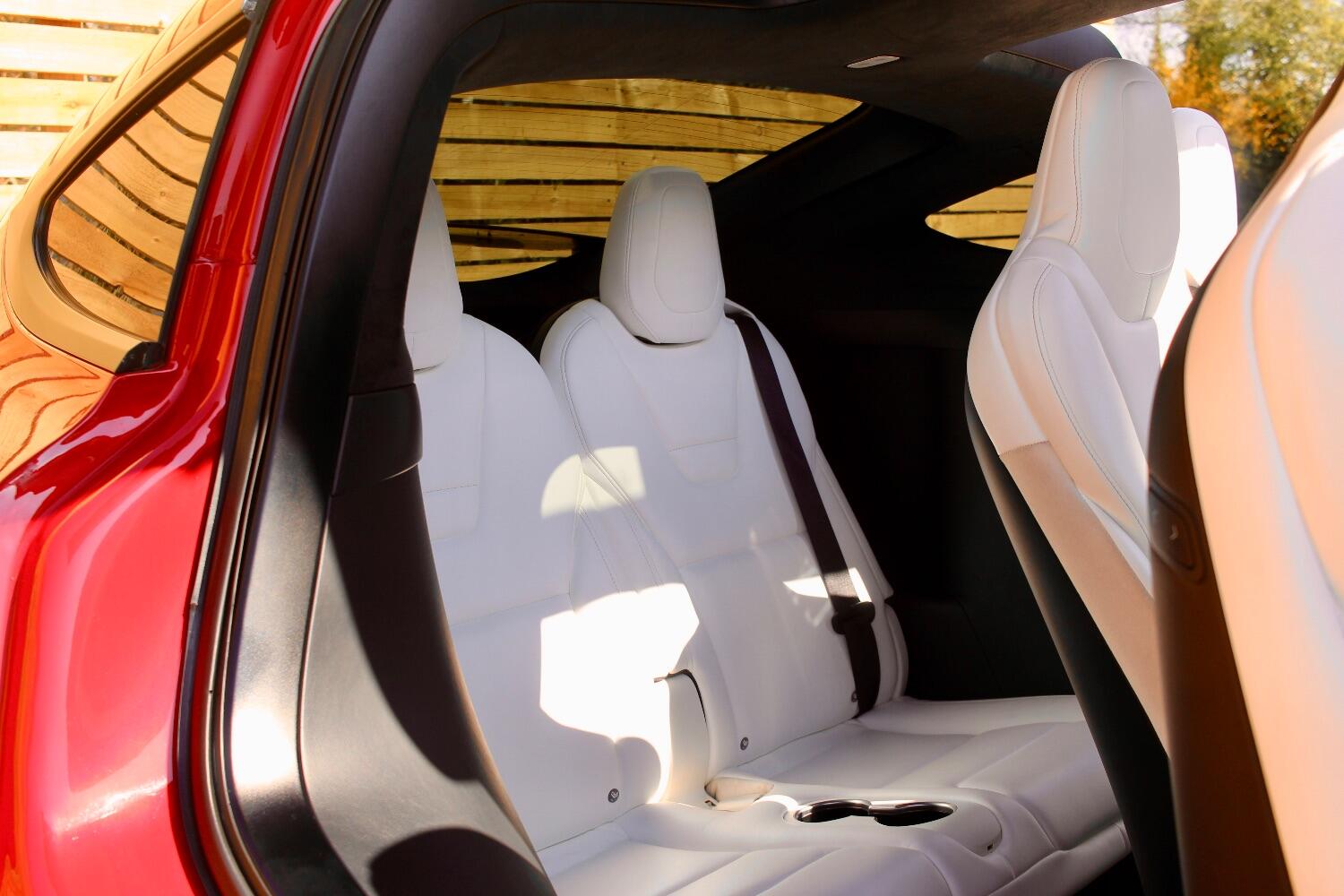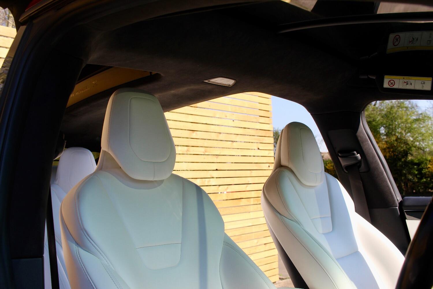 There is an excellent specification on this Model X which includes - MCU 2, 7 Seats, Full self drive capability, White premium leather interior, Electric adjustable front and middle row seats, Sub zero weather pack, All seats heated, Heated steering wheel, Smart air suspension, Summon, Dark ash interior trim, GPS enabled homelink, Automatic lights and wipers, Automatic high beam assist, Electric folding door mirrors, Electric tailgate, Parking sensors, Cameras, Adaptive cruise control, Darkened rear glass, Satellite navigation, Bluetooth telephone and media, DAB radio, 22" Onyx alloy wheels in gloss black, Dark Alcantara headlining, Premium upgrades package