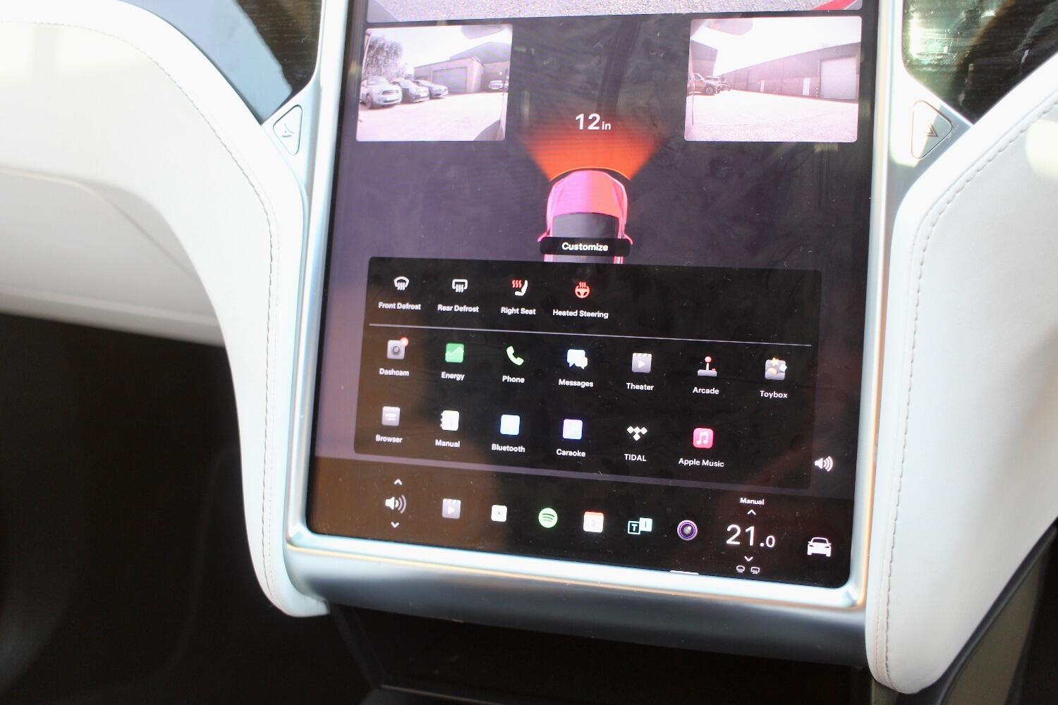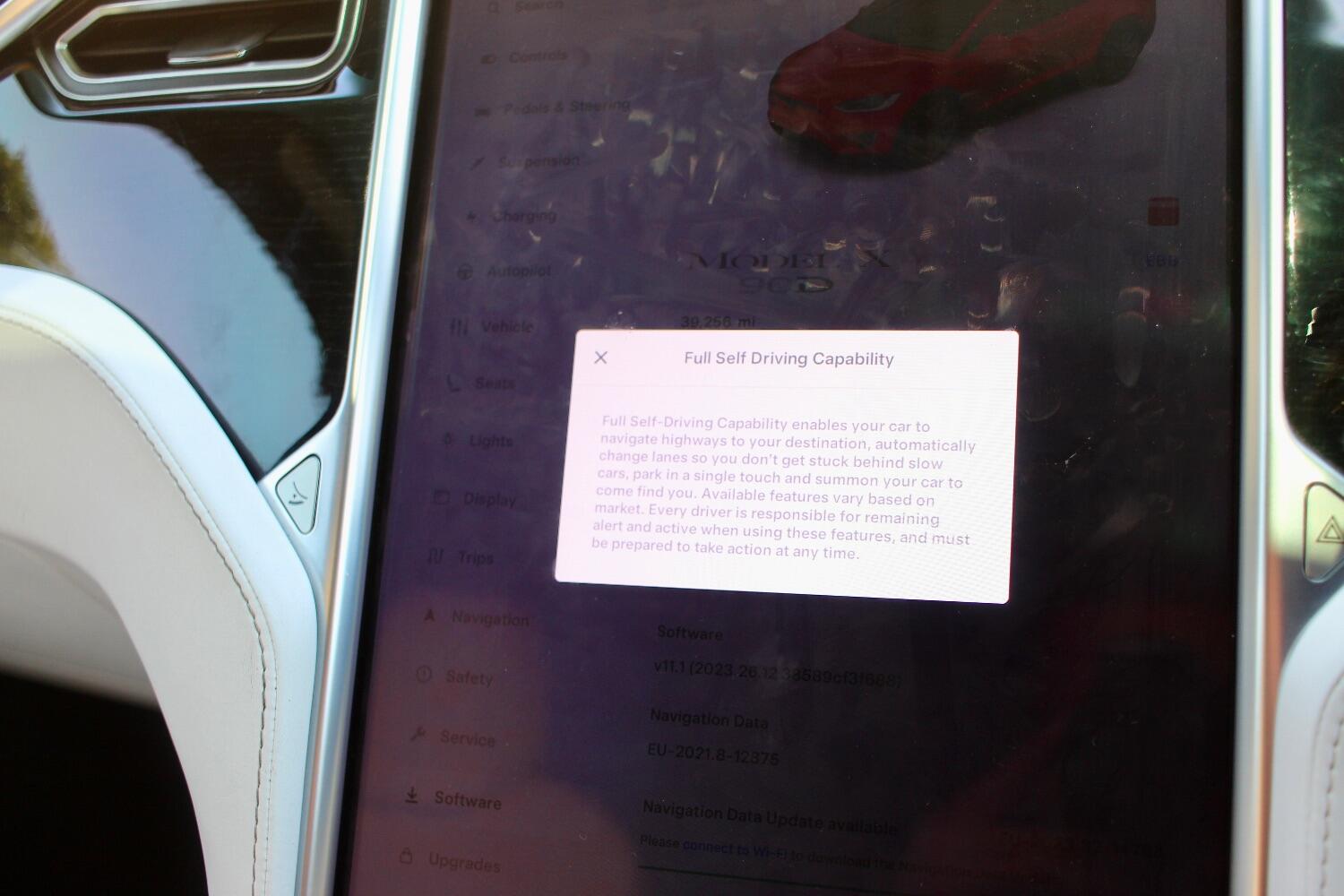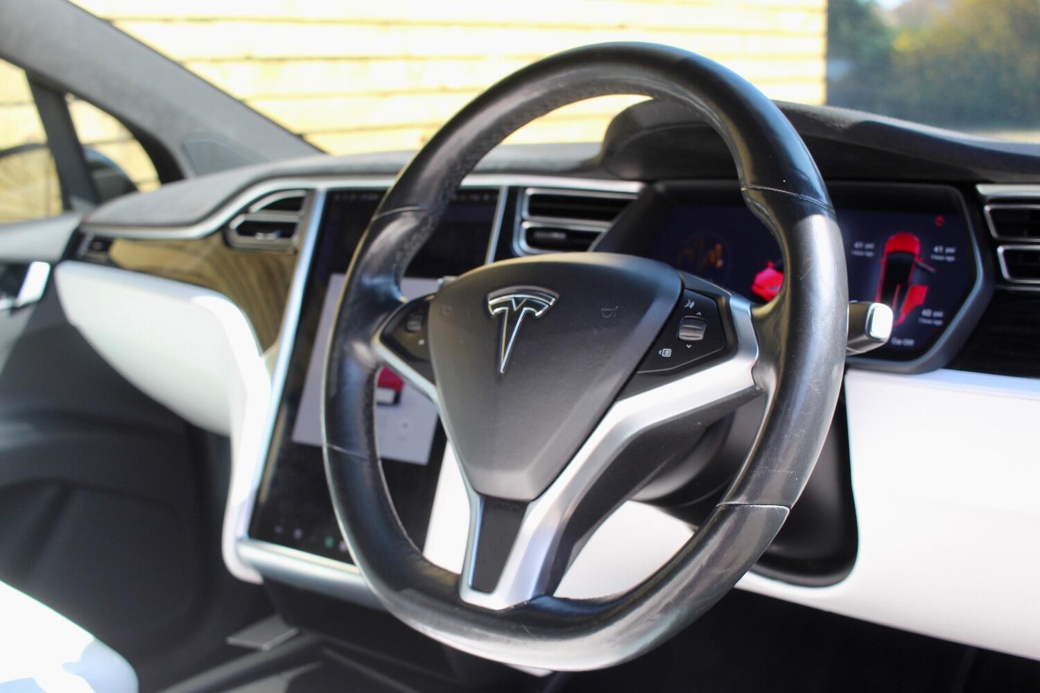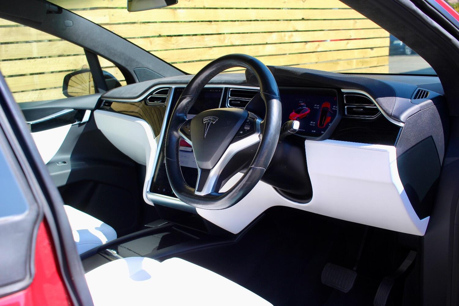 There is an excellent specification on this Model X which includes - MCU 2, 7 Seats, Full self drive capability, White premium leather interior, Electric adjustable front and middle row seats, Sub zero weather pack, All seats heated, Heated steering wheel, Smart air suspension, Summon, Dark ash interior trim, GPS enabled homelink, Automatic lights and wipers, Automatic high beam assist, Electric folding door mirrors, Electric tailgate, Parking sensors, Cameras, Adaptive cruise control, Darkened rear glass, Satellite navigation, Bluetooth telephone and media, DAB radio, 22" Onyx alloy wheels in gloss black, Dark Alcantara headlining, Premium upgrades package