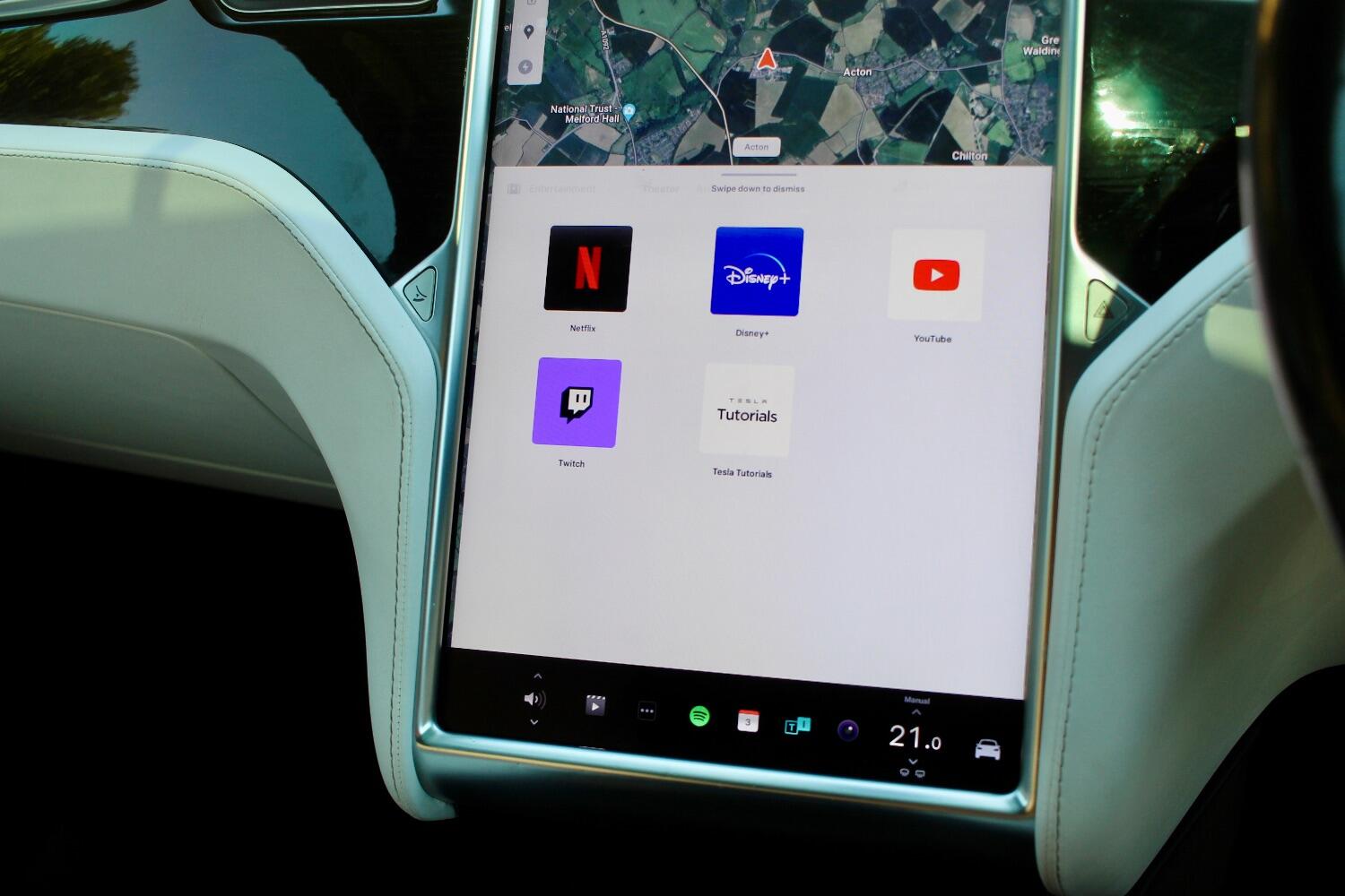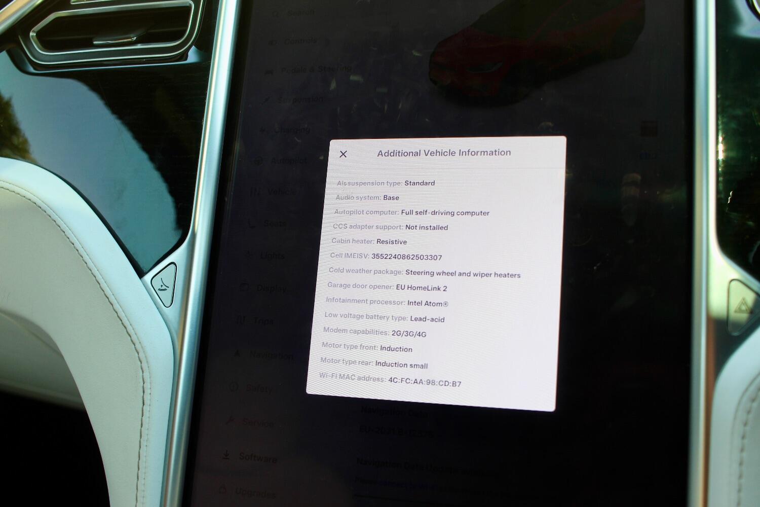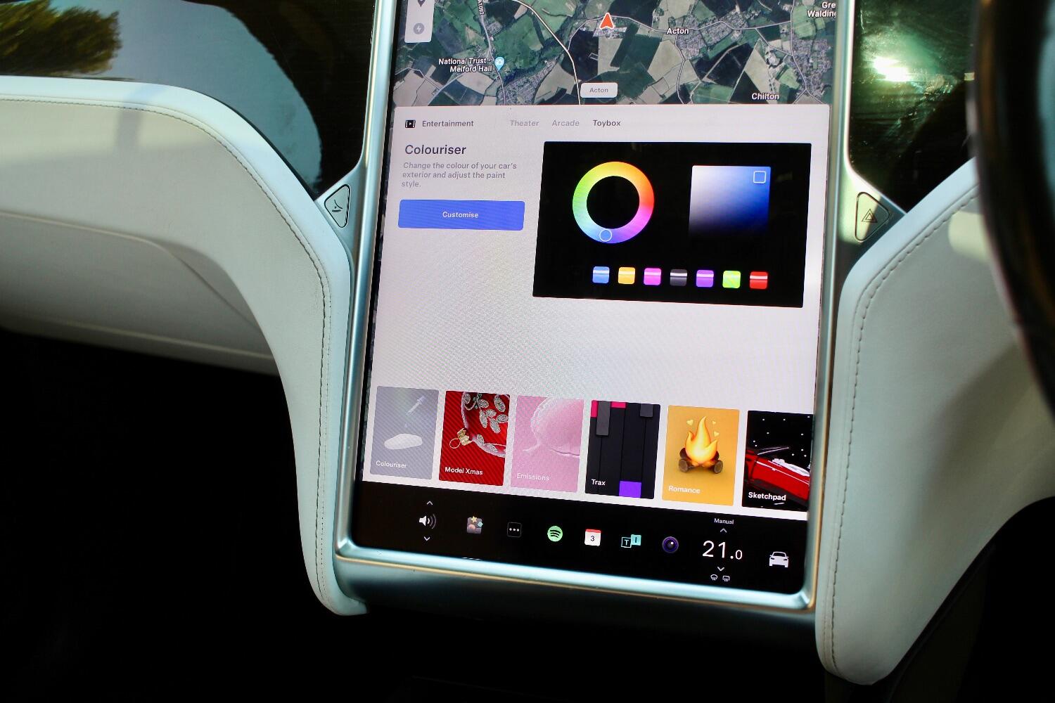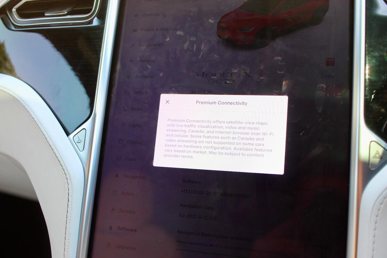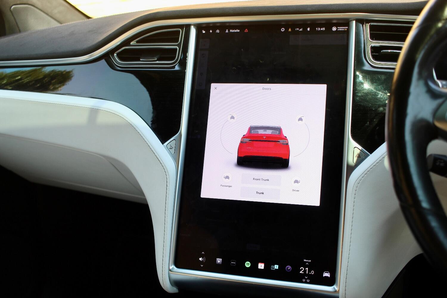 There is an excellent specification on this Model X which includes - MCU 2, 7 Seats, Full self drive capability, White premium leather interior, Electric adjustable front and middle row seats, Sub zero weather pack, All seats heated, Heated steering wheel, Smart air suspension, Summon, Dark ash interior trim, GPS enabled homelink, Automatic lights and wipers, Automatic high beam assist, Electric folding door mirrors, Electric tailgate, Parking sensors, Cameras, Adaptive cruise control, Darkened rear glass, Satellite navigation, Bluetooth telephone and media, DAB radio, 22" Onyx alloy wheels in gloss black, Dark Alcantara headlining, Premium upgrades package