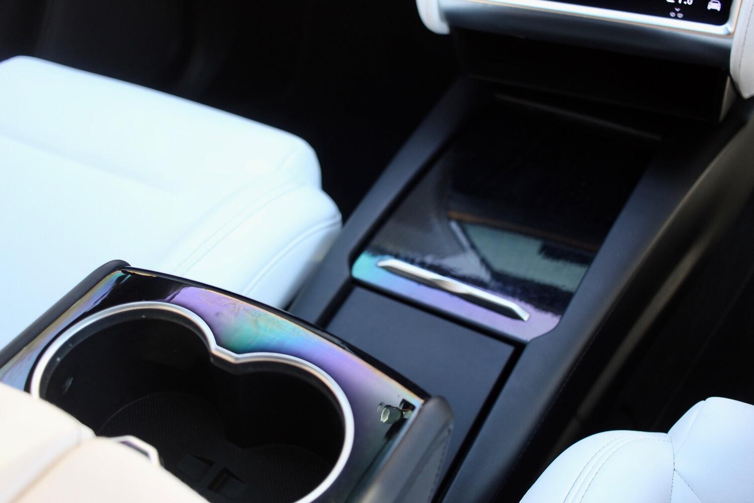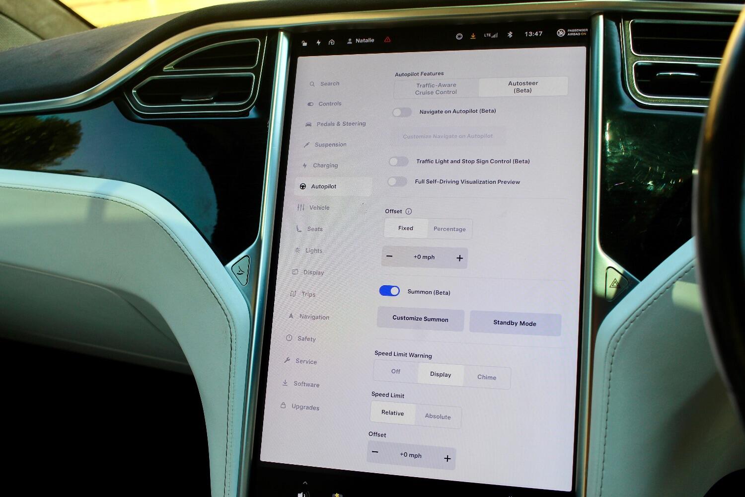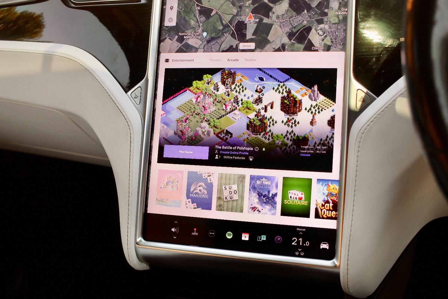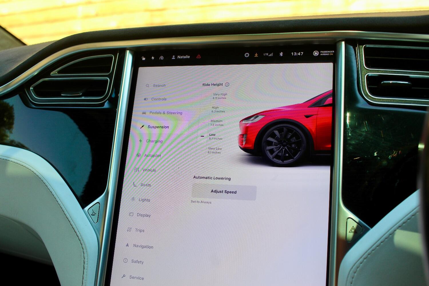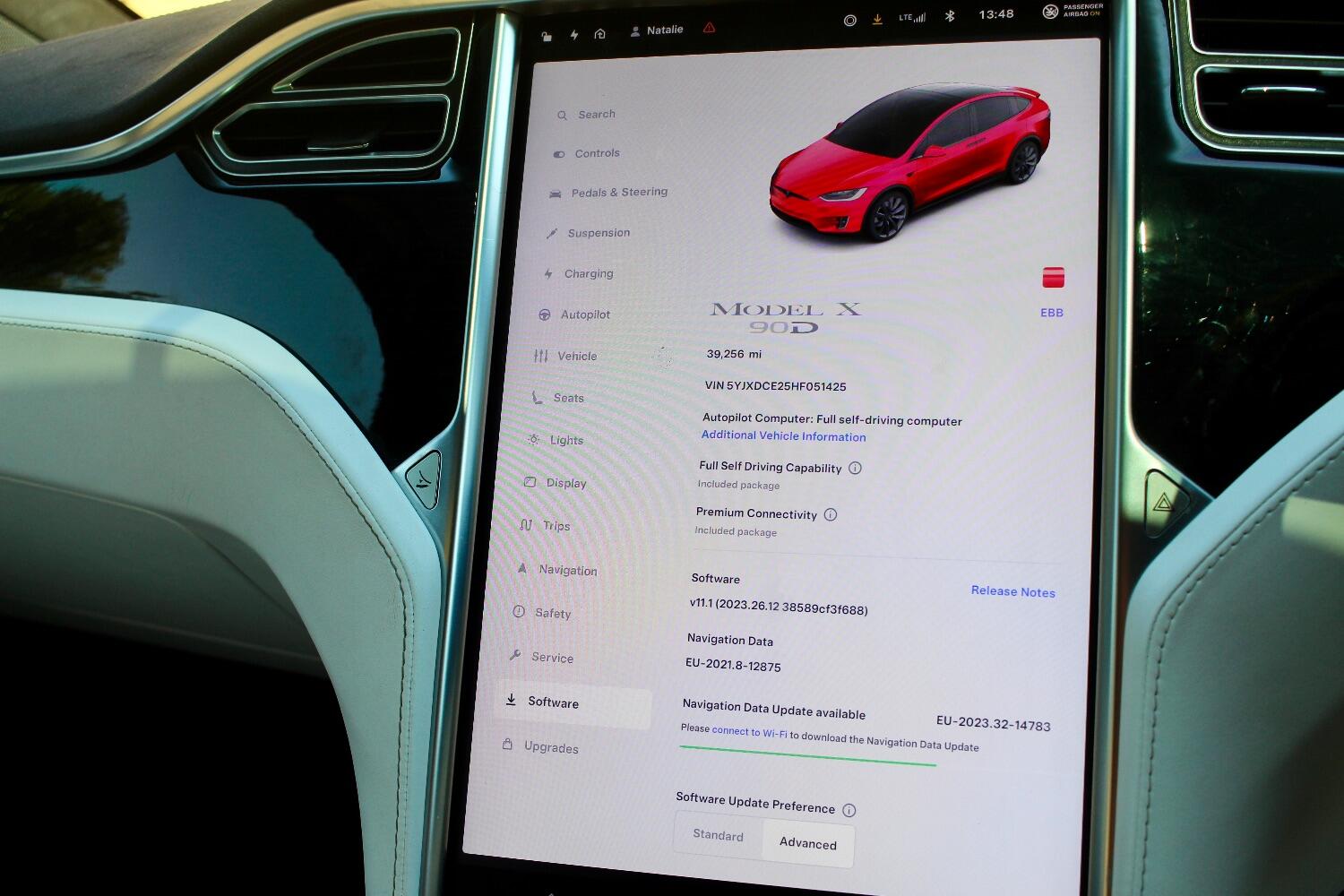There is an excellent specification on this Model X which includes - MCU 2, 7 Seats, Full self drive capability, White premium leather interior, Electric adjustable front and middle row seats, Sub zero weather pack, All seats heated, Heated steering wheel, Smart air suspension, Summon, Dark ash interior trim, GPS enabled homelink, Automatic lights and wipers, Automatic high beam assist, Electric folding door mirrors, Electric tailgate, Parking sensors, Cameras, Adaptive cruise control, Darkened rear glass, Satellite navigation, Bluetooth telephone and media, DAB radio, 22" Onyx alloy wheels in gloss black, Dark Alcantara headlining, Premium upgrades package